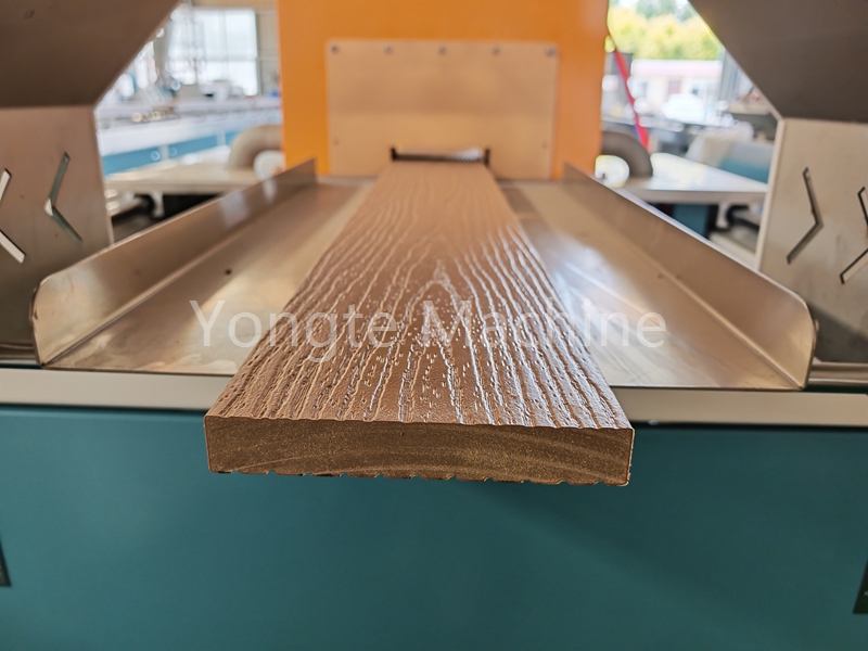 5.Aanlyn 3D-bosseleertoerusting: Om die houtkorrel-estetiese en anti-gly-eienskappe van Wood Plastic Composite te versterk, het ons 'n aanlyn 3D-diep bosseleermasjien geïntegreer. Hierdie toerusting kan op die kalibrasietabel van die WPC-ekstrusielyn aangebring word om 'n meer outentieke houtkorrel-effek te produseer. Die reliëfrol is ontwerp om uitruilbaar te wees, wat die vervaardiging van diverse houtteksture moontlik maak.