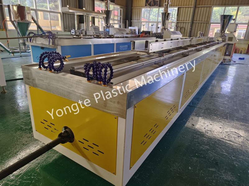 Yongte verskaf hoë kwaliteit ekstrusiemasjien wat WPC-deurraam maak, dit is toegerus met 'n hoë effektiewe ekstrusiestelsel, hoëspoedvorm, vinnige verkoelingstelsel en outomatiese beheerstelsel. hierdie ekstrusiemasjien kan gebruik word om verskillende WPC-profiele te maak deur vorm te verander
