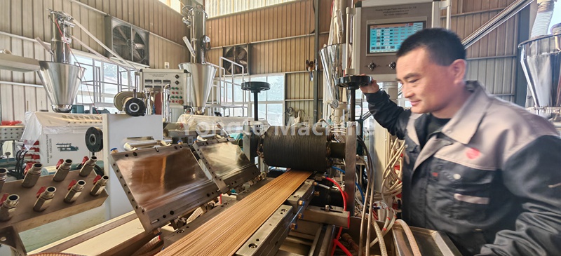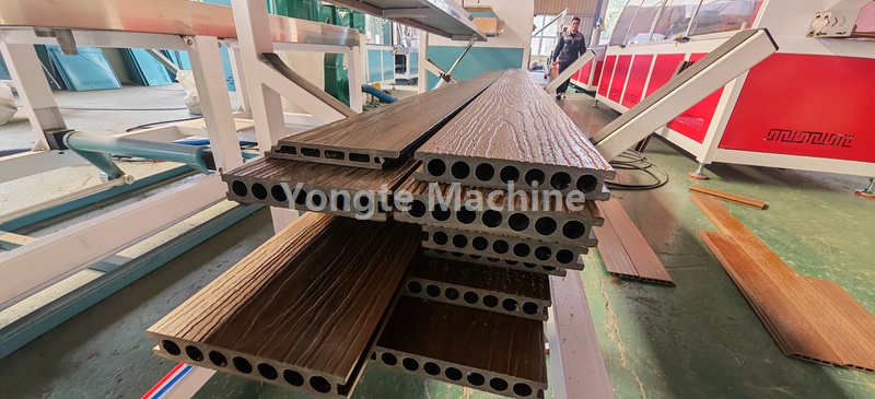 Ons het vandag ons WPC-profielmasjien vir ons klant van Suid-Afrika getoets, Ons het al die bestelde vorms getoets en baie pragtige WPC-dek-/muurpaneel-/heiningpaneelprodukte gemaak met aanlyn 3D-reliëfwerk. Die toetsing is baie suksesvol met prestasie van stabiele produksie, hoë kapasiteit en goeie kwaliteit van die produk.