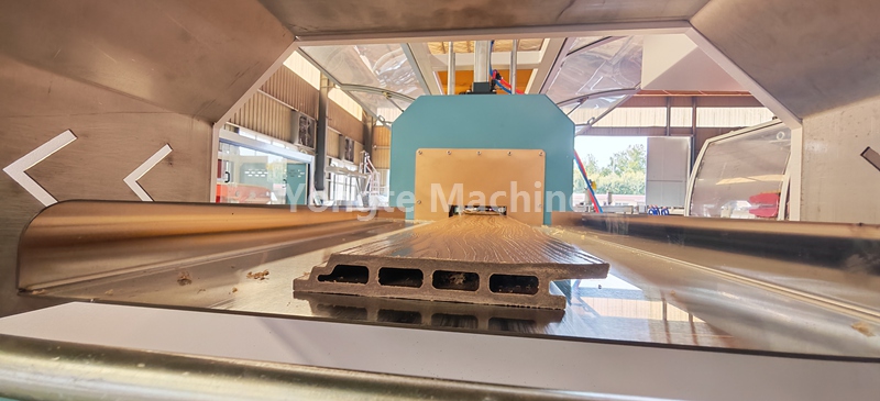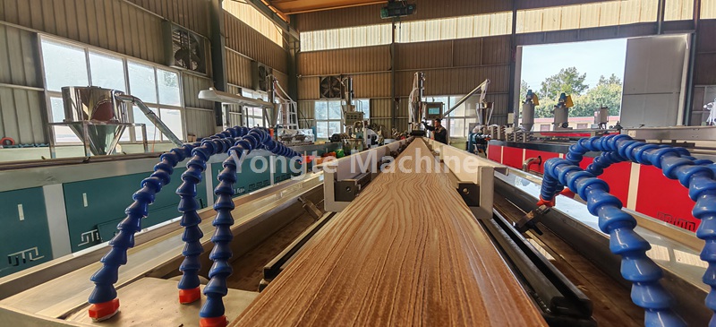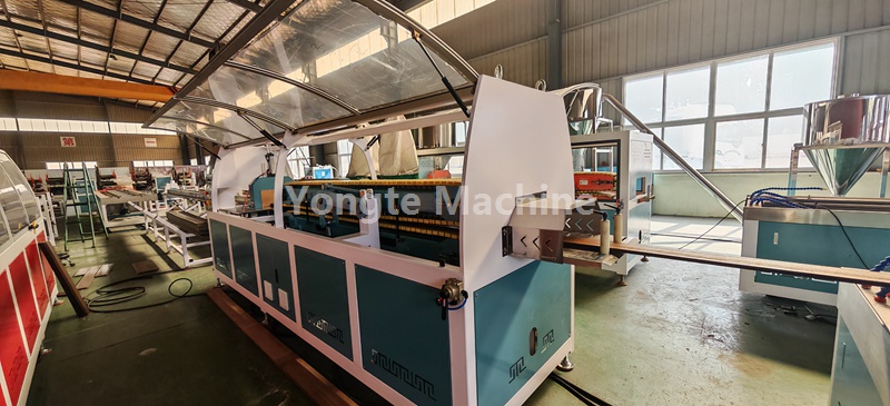 Hierdie WPC-profiel-ekstrusielyn is toegerus met outomatiese vakuumtoevoerstelsel, hoë effektiewe koniese dubbelskroef-ekstrusiestelsel, PLC-beheerstelsel, aanlyn 3D-bosseleermasjien, water- en vakuumverkoeling- en kalibrasietafel, dubbele ruspe-afvoer, outomatiese snymasjien met stofversamelaar, en produkstapelaar.