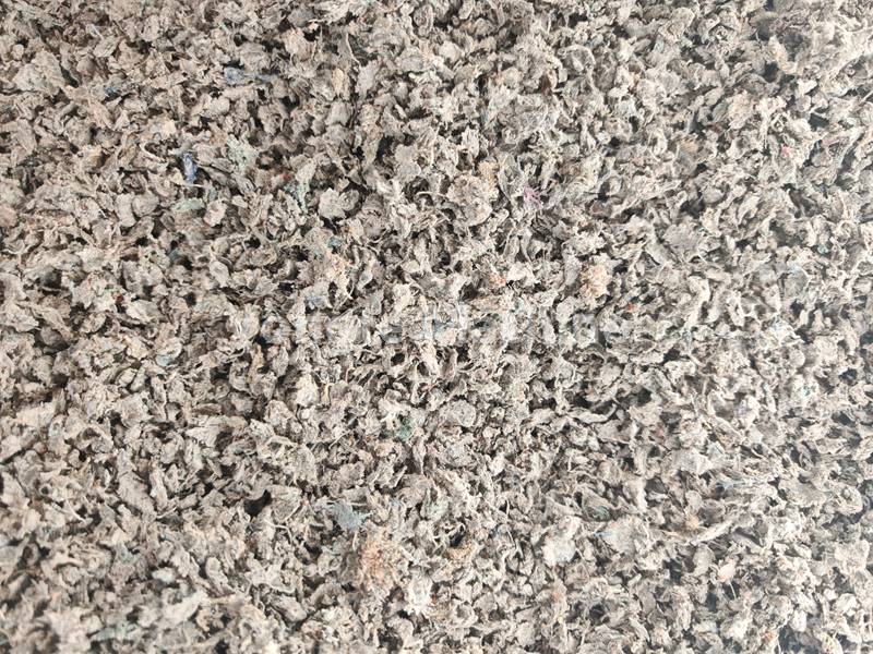 1, afvalklere wat versnipper, fyngedruk en in klein klereafval omskep word