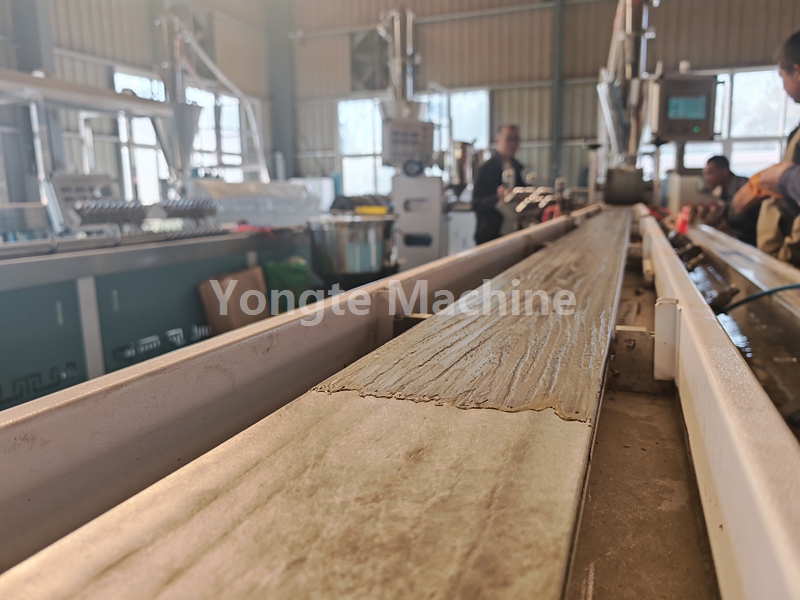 4, Ekstrusie die saamgestelde materiaal deur koniese dubbelskroef-ekstruder en spesiaal ontwerpte WPC-dekvorm,