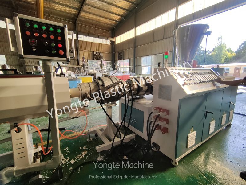 Yongte PVC pyp ekstrudermasjien gebruik hoë doeltreffendheid ekstrusie masjien, presisie matrys en vorm, hoë spoed verkoeling tenk, outomatiese sny masjien, dit is hoë kwaliteit PVC pyp produksie masjien
