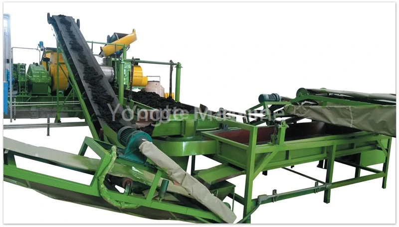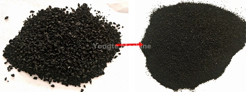 Masjien vir die maak van rubberpoeier: dit sal die afvalrubberband in rubberpoeier herwin, dit sluit funksies van staaldraad uithaal, rubberband sny, versnippering, vergruis en slypproses in. |