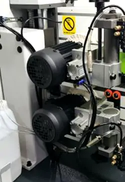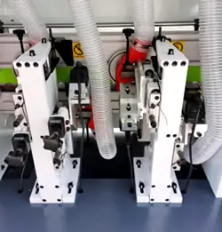 Voor-myl: Paneelrandoppervlak sonder enige onvolmaakthede voor die gombewerking. Dit gebruik 2 gereedskap met opponerende rotasie en tydige ingryping wat, deur die verwyderingsoperasie, enige paneelonvolmaakthede wat veroorsaak word deur die saagsnyproses en paneelberging, regstel. |